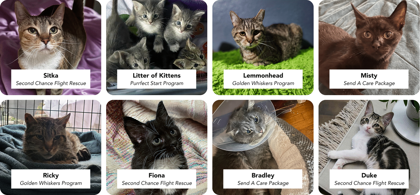 Get access today for only $4.99 per month which funds meals for 5 shelter cats. (The price of a cup of coffee).