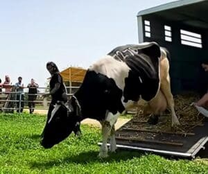 Ruthie had spent her early life on a dairy farm. There, she gave birth to eleven calves, but not once did she get to meet or nurse a single one. Each baby was taken away moments after birth, their cries echoing in a place where motherly love was never allowed to bloom. The milk she produced for them was collected and sold, leaving her body drained and her heart hollow. By the time she was rescued, Ruthie had long stopped believing she would ever be a mother.