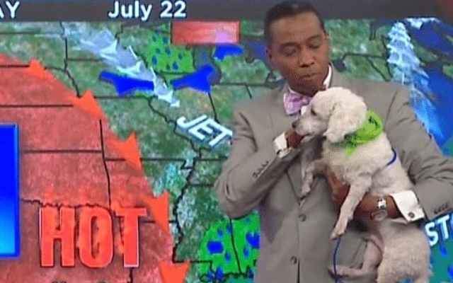 Just as Marshall was forecasting the day’s weather, Angel sniffed his way onto the set. Spotting the pup, Marshall couldn’t contain his excitement.