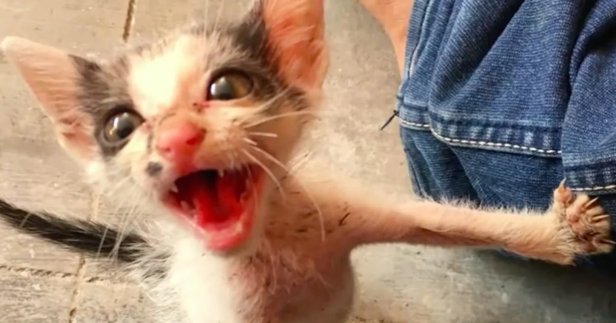 “Hey there, little one. We’re here to help you.” The kitten gave a slow blink, acknowledging their presence, but she was too drained to react. Without hesitation, Anna gently picked up the frail kitten, feeling her tiny body shiver in response to the warmth of human touch. The group hurried to a nearby café, offering the kitten a few scraps of food.
