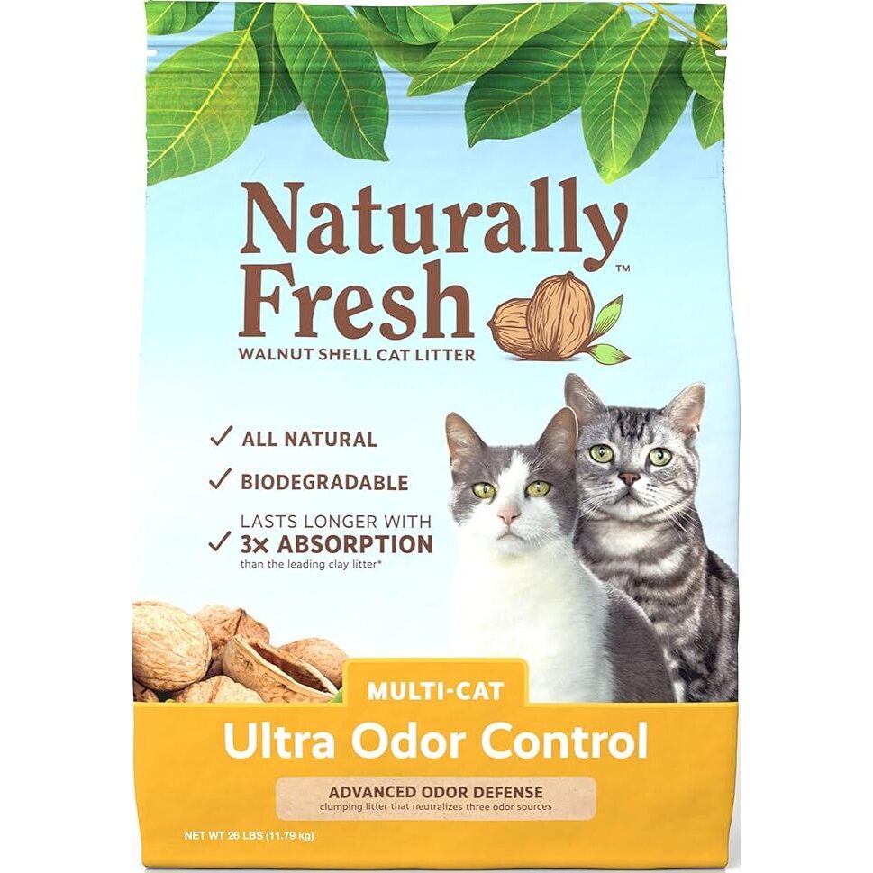 Naturally Fresh Ultra Odor Control Cat Litter is made from walnut shells — a sustainable, 100% natural material that absorbs odors exceptionally well. It’s low-dust, minimal-tracking, and eco-friendly. A great pick for cat owners who want effective odor control without clay or artificial additives.