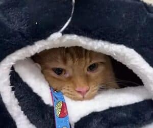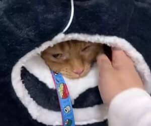 He did not need to meow or protest loudly. His stillness spoke for him. His comfort told the whole story.