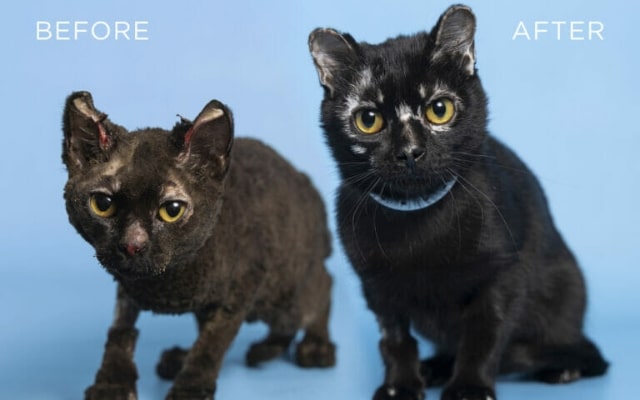 An amazing story of resilience: a cat who was badly burned in a fire has made a full recovery and is now hoping to find a loving home.