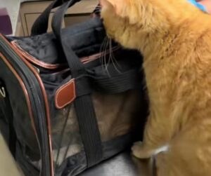 He let out a soft meow and moved closer, sniffing the carrier as if confirming it was really him. The moment the zipper opened, Alti pushed his head inside, eager to close the distance that had kept them apart.