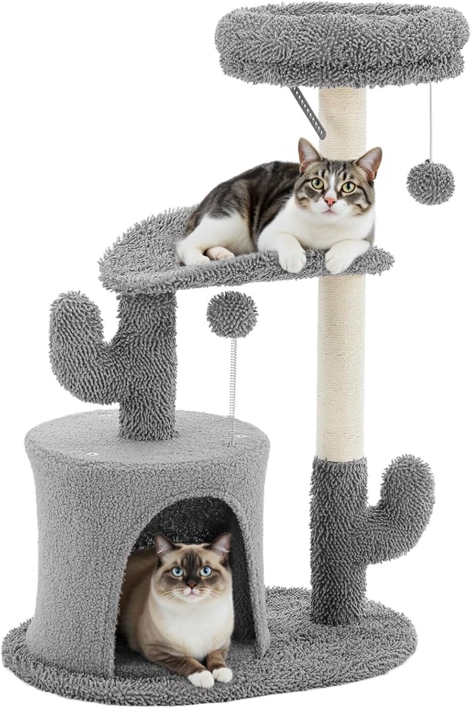 This cactus-themed cat tree adds a playful touch while offering multiple activity levels. It supports climbing, scratching, and lounging. The design keeps cats engaged throughout the day. It brings a unique visual element to the space. Function and style come together easily.