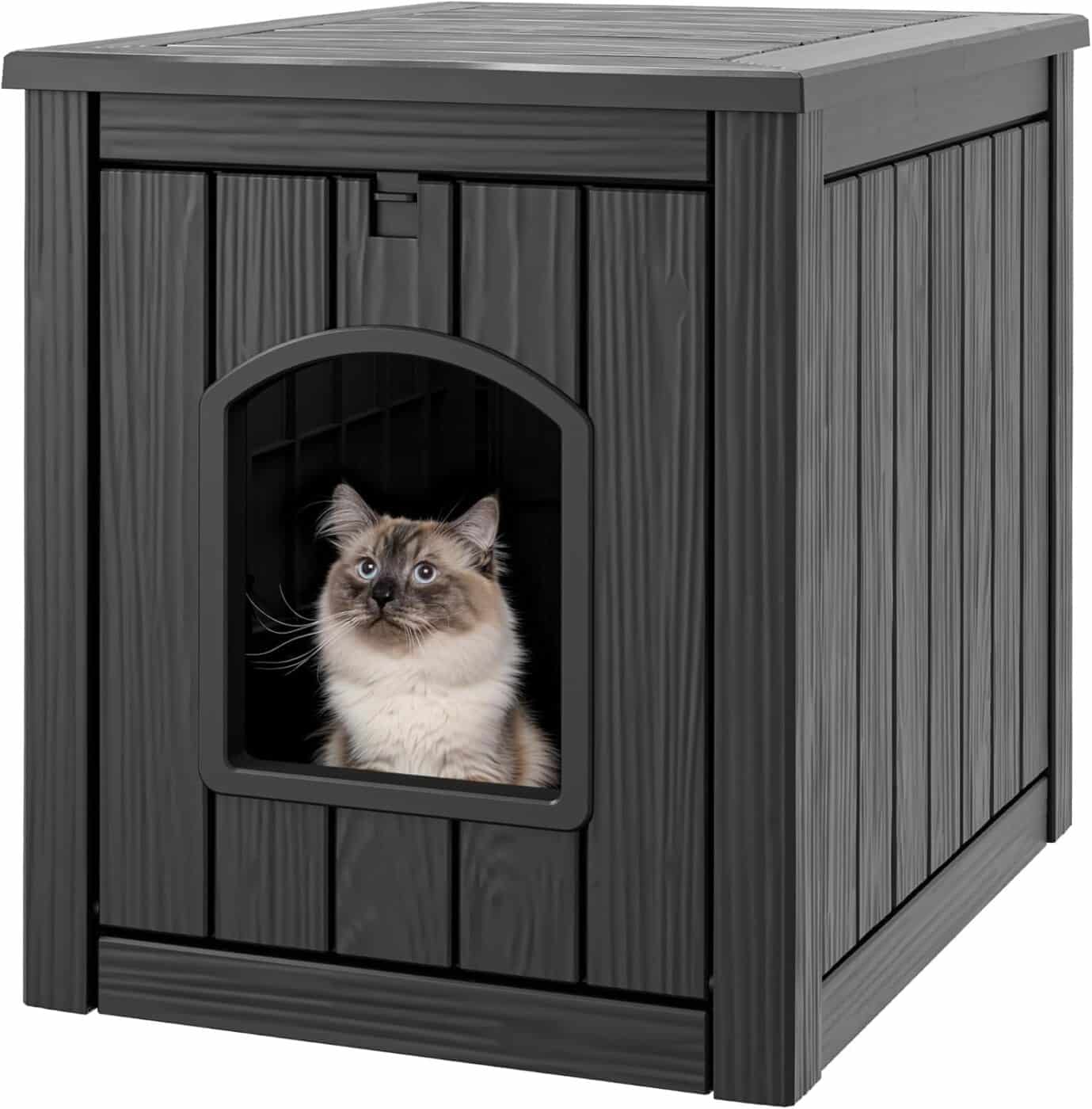 This enclosed litter box offers added privacy and helps contain odors. The hidden design blends more easily into home spaces. The front door allows for easy access and cleaning. It keeps litter more contained within the unit. It creates a cleaner and more discreet setup.