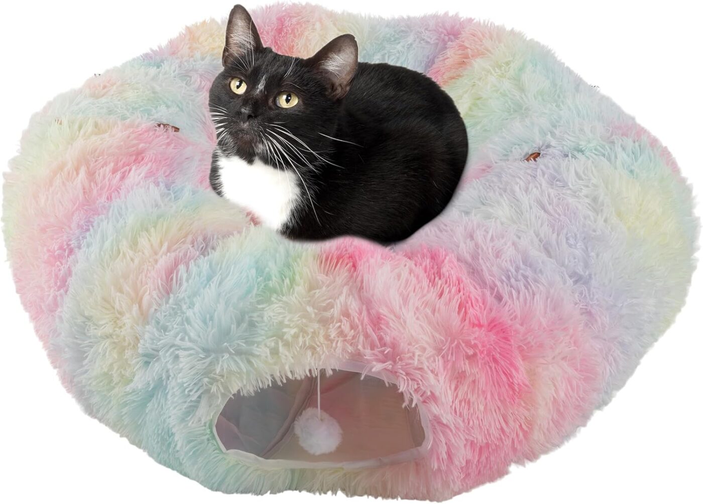 This tunnel and bed combination supports both play and rest. Cats can move through the tunnel and settle down comfortably. It encourages activity while still offering a cozy space. The design works well for indoor environments. It brings both stimulation and comfort together.