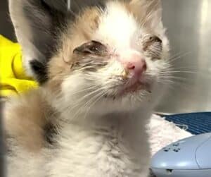 When rescuers first met Marzipan, the tiny gray-and-white kitten was barely clinging to life. Her fragile body fit easily in the palm of a hand, her breathing slow and shallow. At just five weeks old, she was dangerously underweight, eating very little, and slipping further into weakness. The team at Tiny Life Rescue knew she needed immediate help if she was going to survive. They placed her in an incubator to regulate her temperature and carefully connected her to an IV drip for fluids and nutrients.