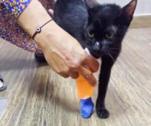 The cat, later named Shay, had been surviving in silence. His body showed the toll of neglect and injury; most likely, he was hit by a car. His legs were so weak that they could no longer support him. Many believed he would never walk again.