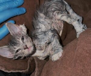 Now back under the shelter’s care for final tests, Elmer is steadily improving. His caregivers describe him as remarkably sweet, a kitten who seems to believe that gentle care and affection are simply part of life.