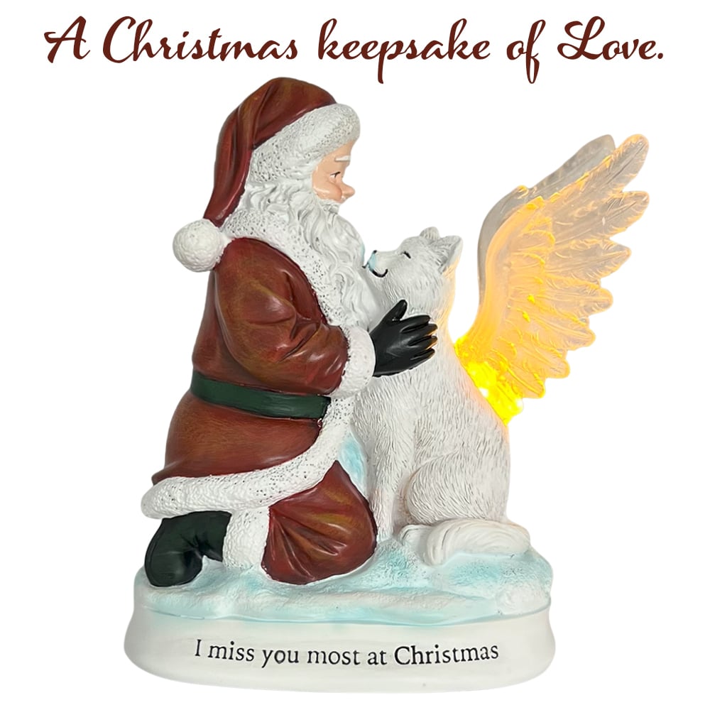 ‘I Miss You Most at Christmas’ Santa & Angel Cat Lighted Memorial Figurine- Helps Feed Hungry Shelter Cats in Need