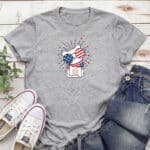 All-American Party Cat Standard Tee Heather Grey - iHeartCats.com