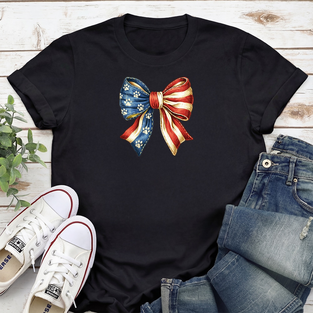 All-American Paw Bow Standard Tee Black - iHeartCats.com