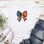 All-American Paw Bow Standard Tee White - iHeartCats.com