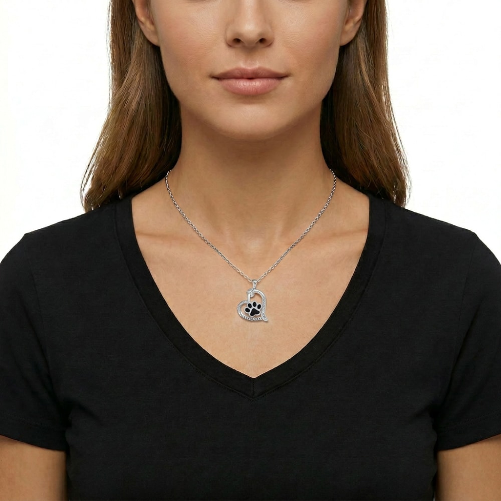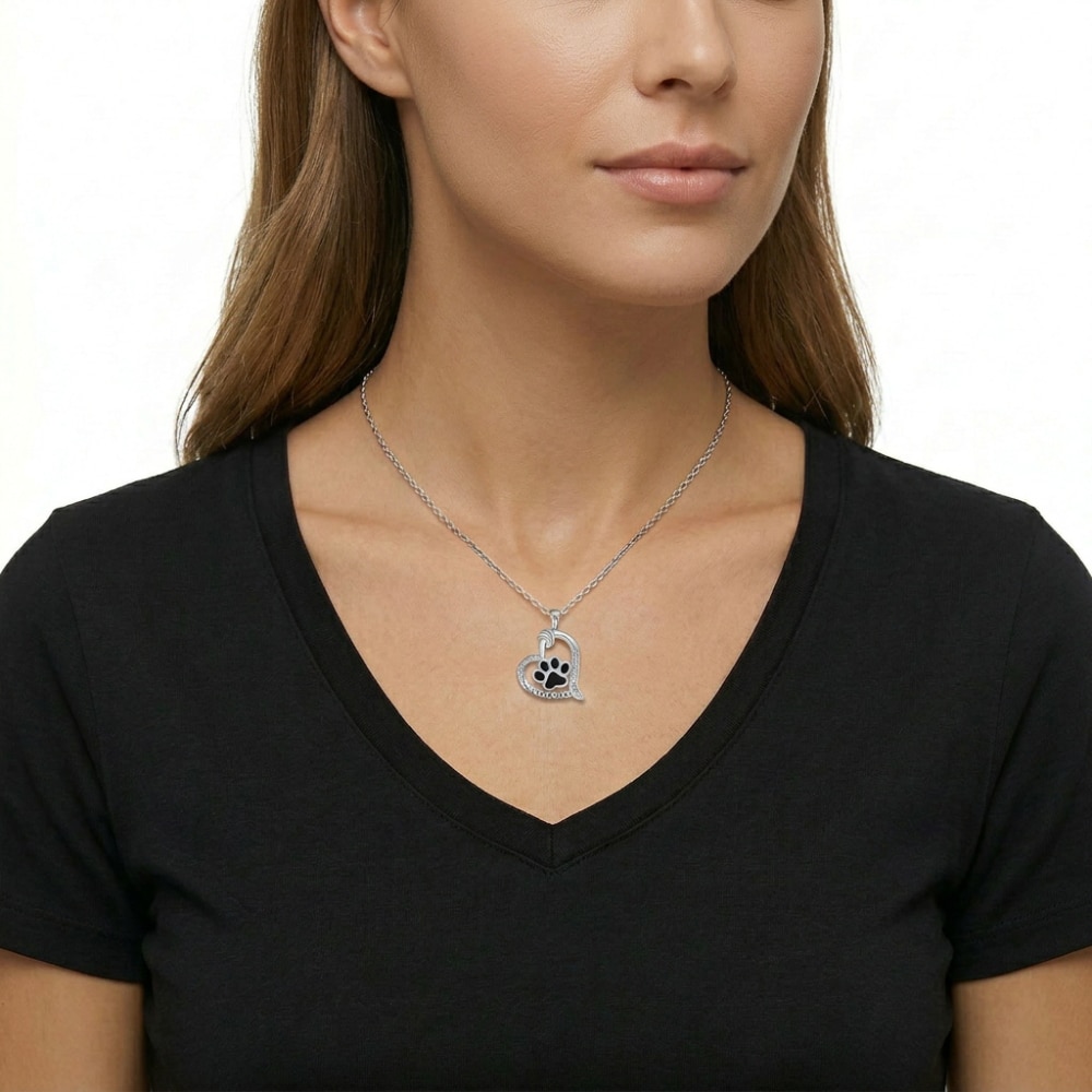 Celebrate the love you share with your furry companion with theForever Paw Love Heart Necklace. This elegant silver-tone pendant features a heart-shaped design with a black paw print centerpiece and sparkling zircon accents, along with the sweet message “I love you.” It’s a beautiful reminder of the unconditional love and loyalty pets bring into our lives.