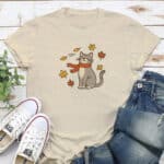 Autumn Leaves Cat Standard Tee Tan - iHeartCats.com