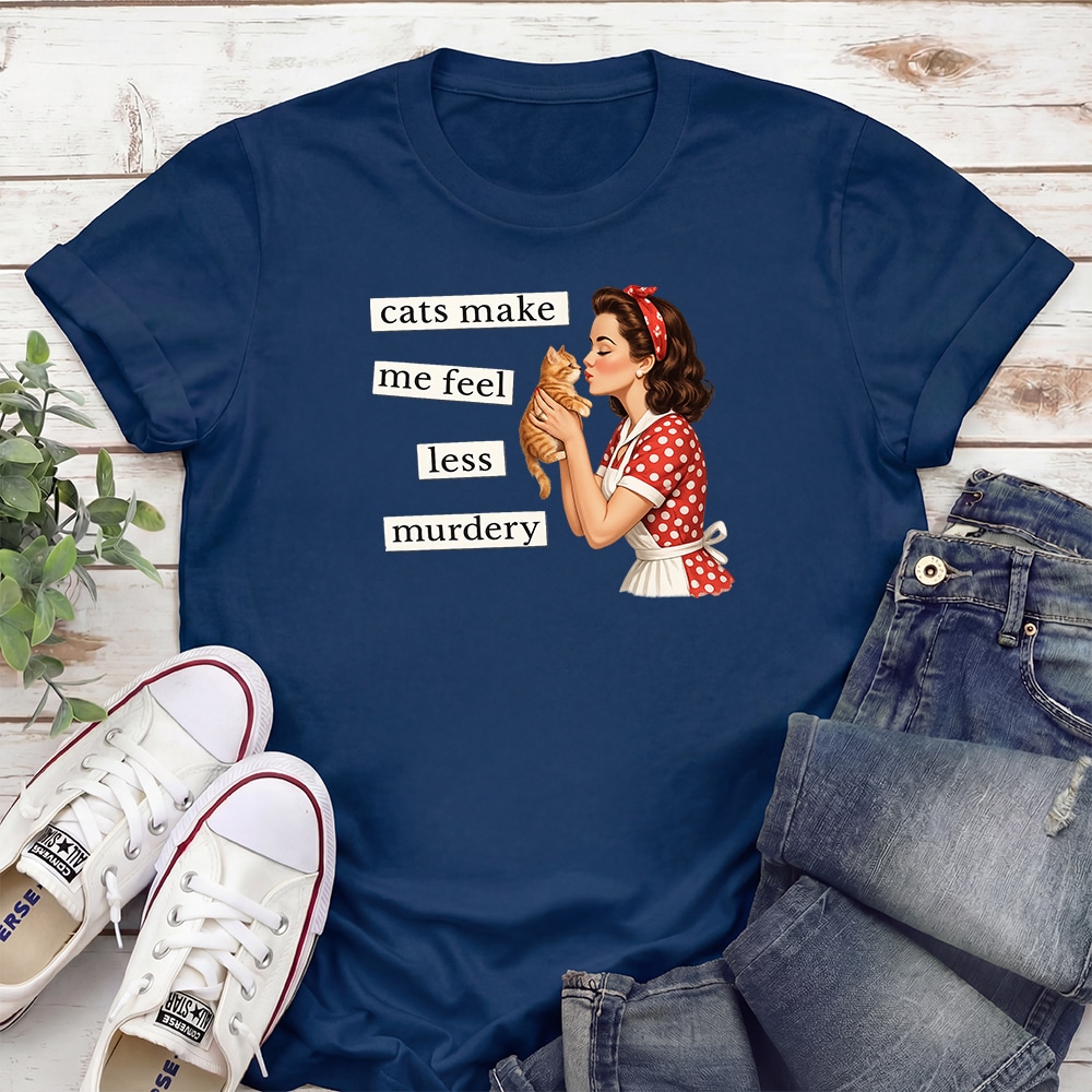 Cats Make Me Feel Less Murdery Standard Tee Navy