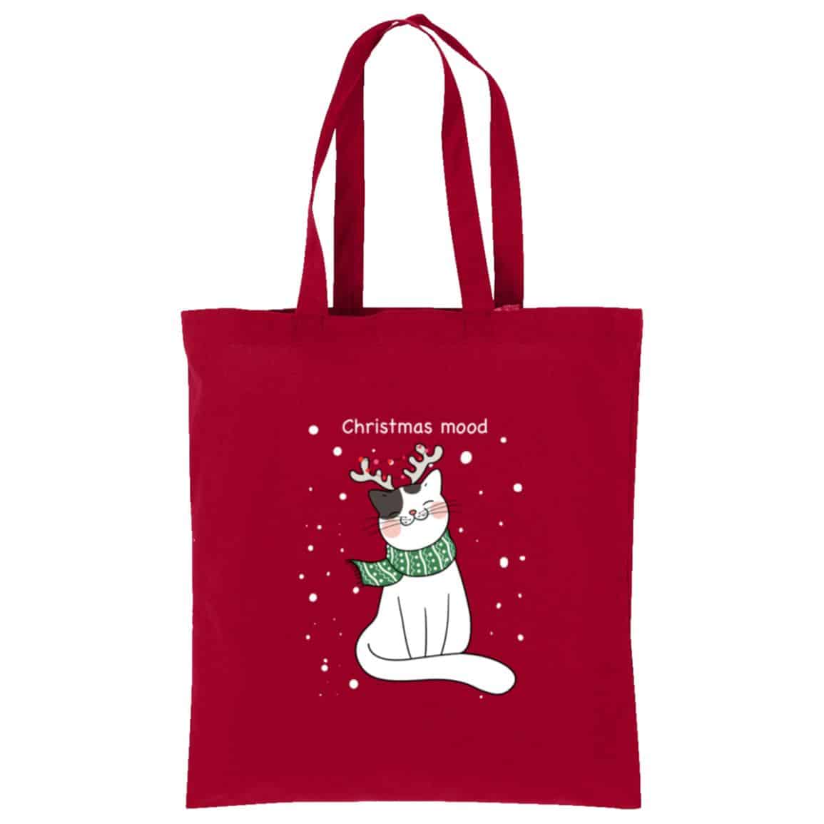 Christmas Mood Cotton Tote Red - iHeartCats.com