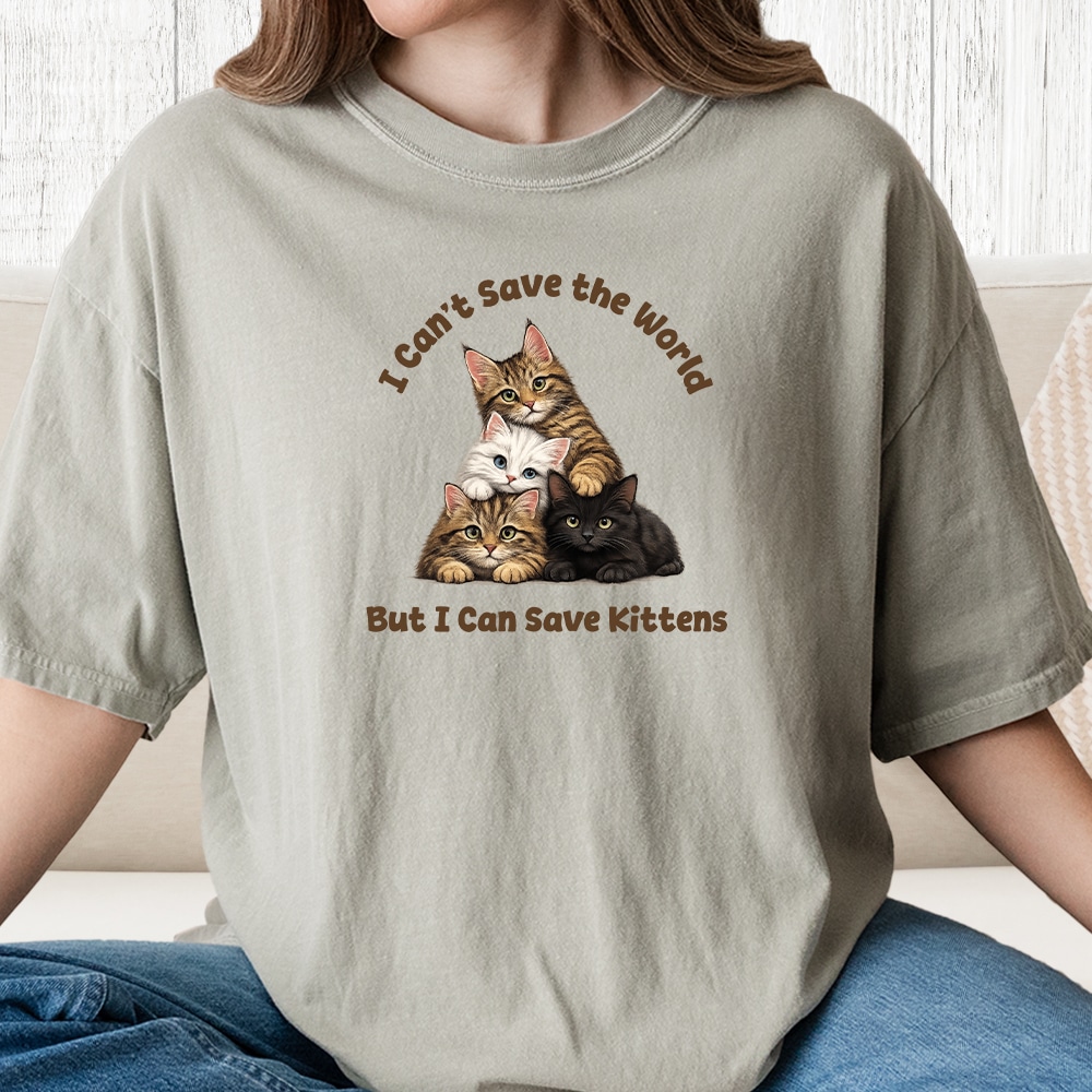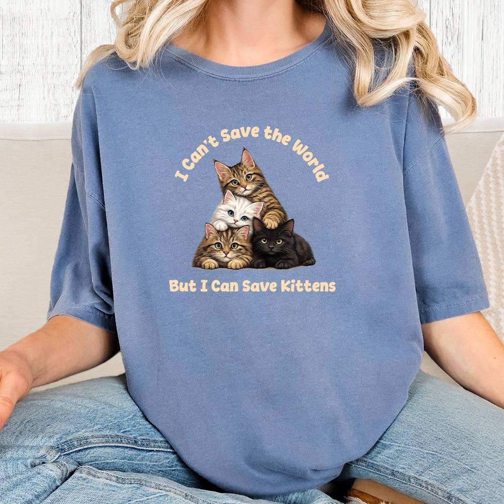 Comfort Colors I Can Save Kittens Vintage Washed Tee – Blue Jean