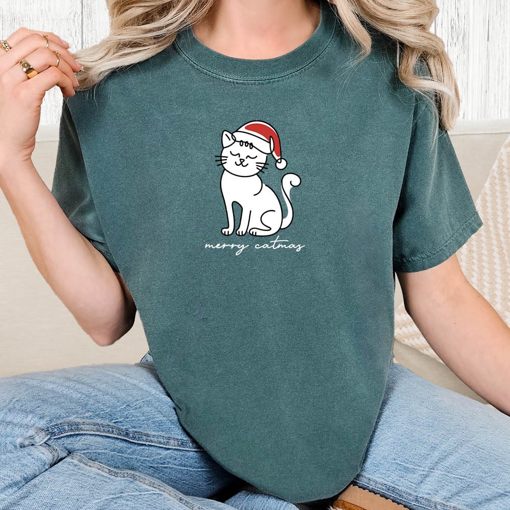 Comfort Colors Merry Catmas Kitty Vintage Washed Tee – Berry