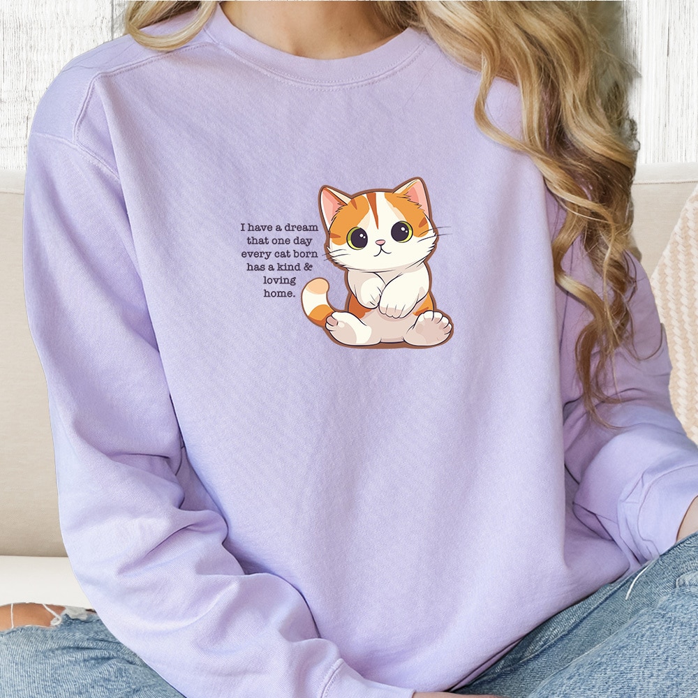 Comfort Colors Purrfect Start – Dream That One Day Every Cat Born Has a Kind & Loving Home Premium Sweatshirt – Orchid – Helps Fund 1 Feeding Kit to Save Kittens’ Lives