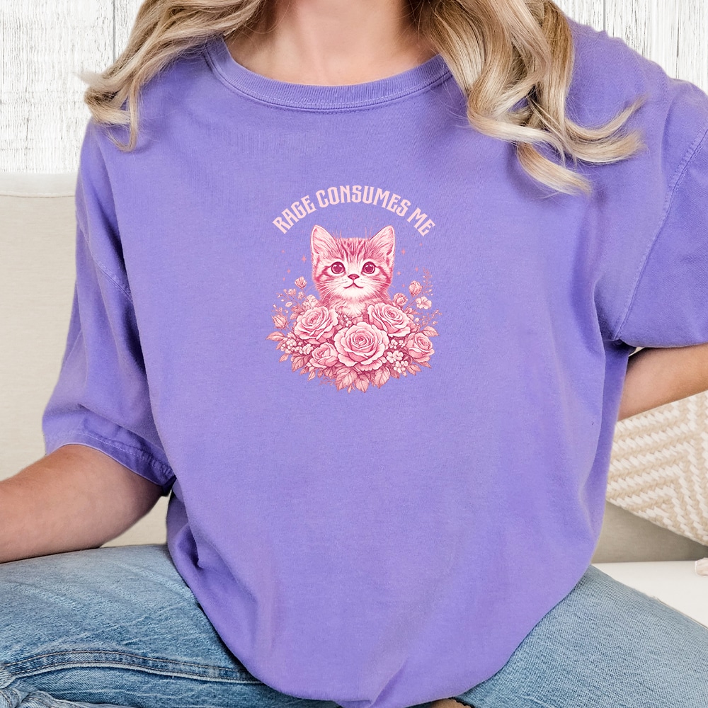 Comfort Colors Rage Consumes Me Kitty Vintage Washed Tee – Violet