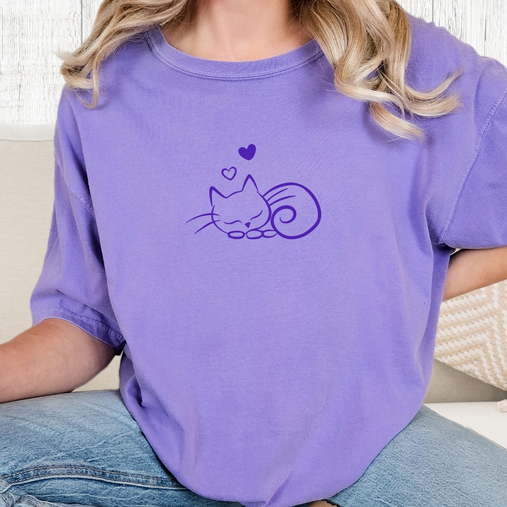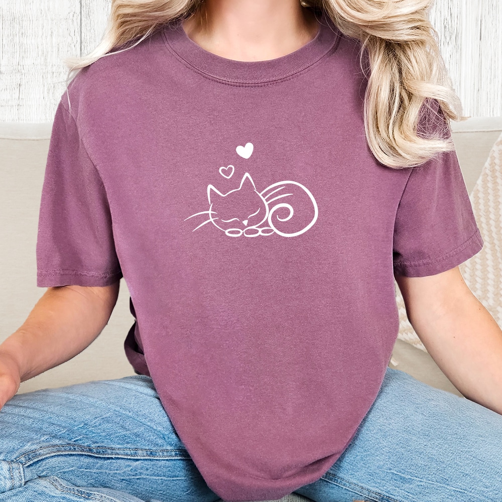 Comfort Colors Sleepy Kitty Vintage Washed Tee – Berry