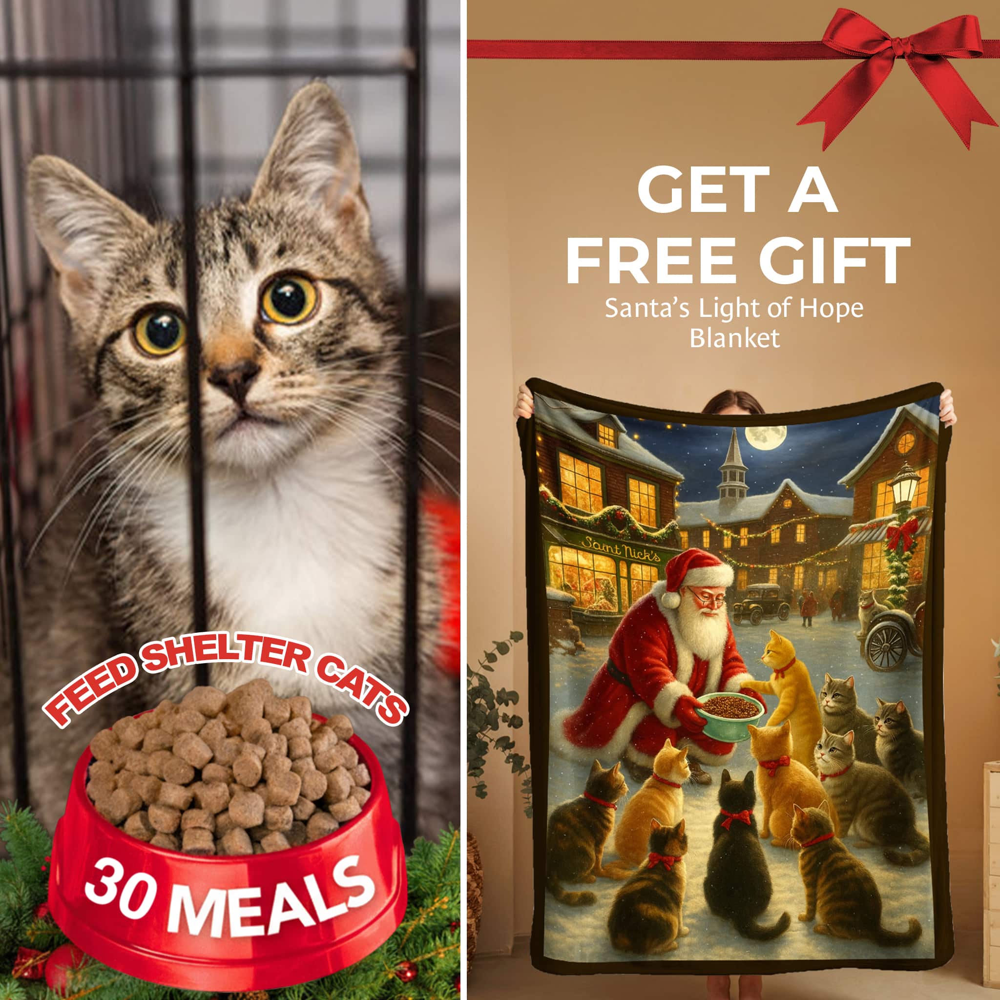 FUND 30 Meals for $20 and Get a FREE Santa’s Light Of Hope for Cats Blanket- Large 60 x 45″, Ultra Soft Throw, Home Decor- Helps Feed Hungry Cats In Need