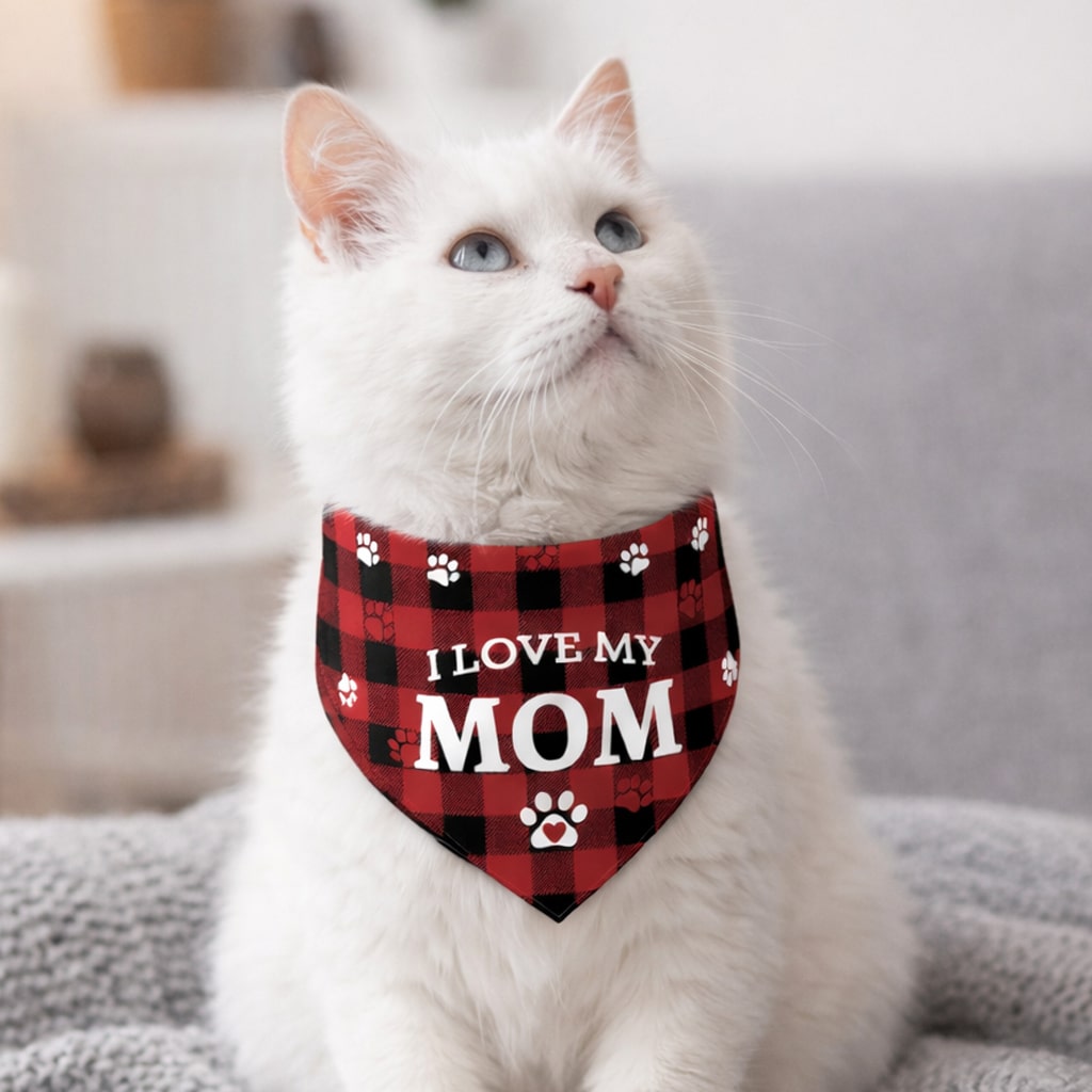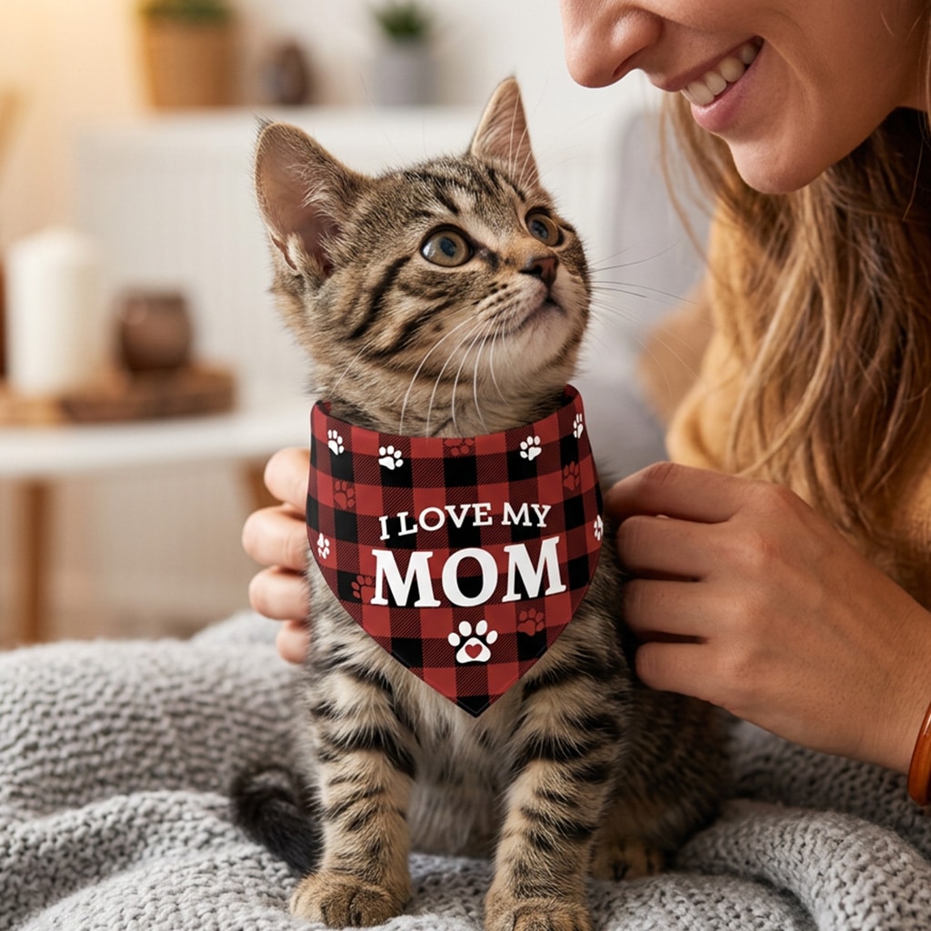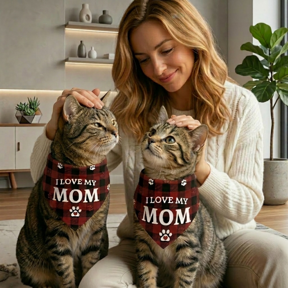 Lightweight and comfortable for everyday wear, this bandana easily ties around your cat’s neck for a secure and adjustable fit. Whether you’re taking photos, celebrating a special occasion, or just showing off your feline’s personality, it’s a charming accessory that lets your cat proudly share their love for mom. 🐾❤️