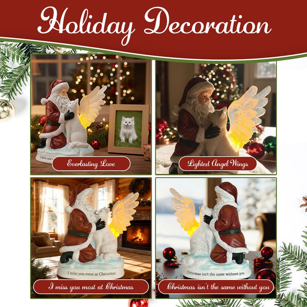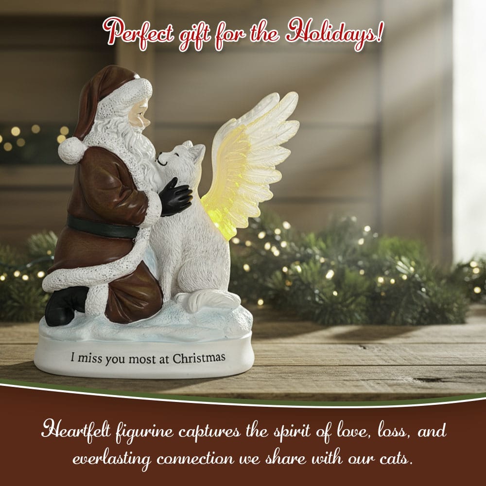 Made With Cat Lovers In Mind – This heartfelt Christmas figurine captures the love between Santa and a loyal angel cat, honoring the pets we miss most during the holidays while sharing the spirit of compassion.