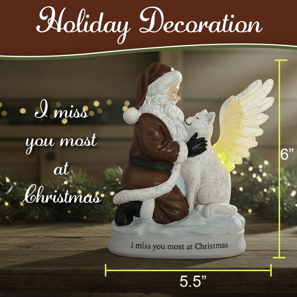 ‘I Miss You Most at Christmas’ Santa & Angel Cat Lighted Memorial Figurine- Helps Feed Hungry Shelter Cats in Need