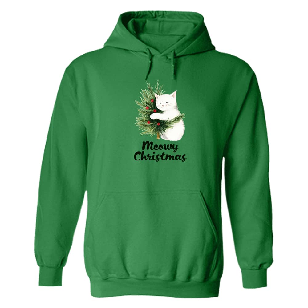 Meowy Christmas Hug Hoodie Irish Green - iHeartCats.com