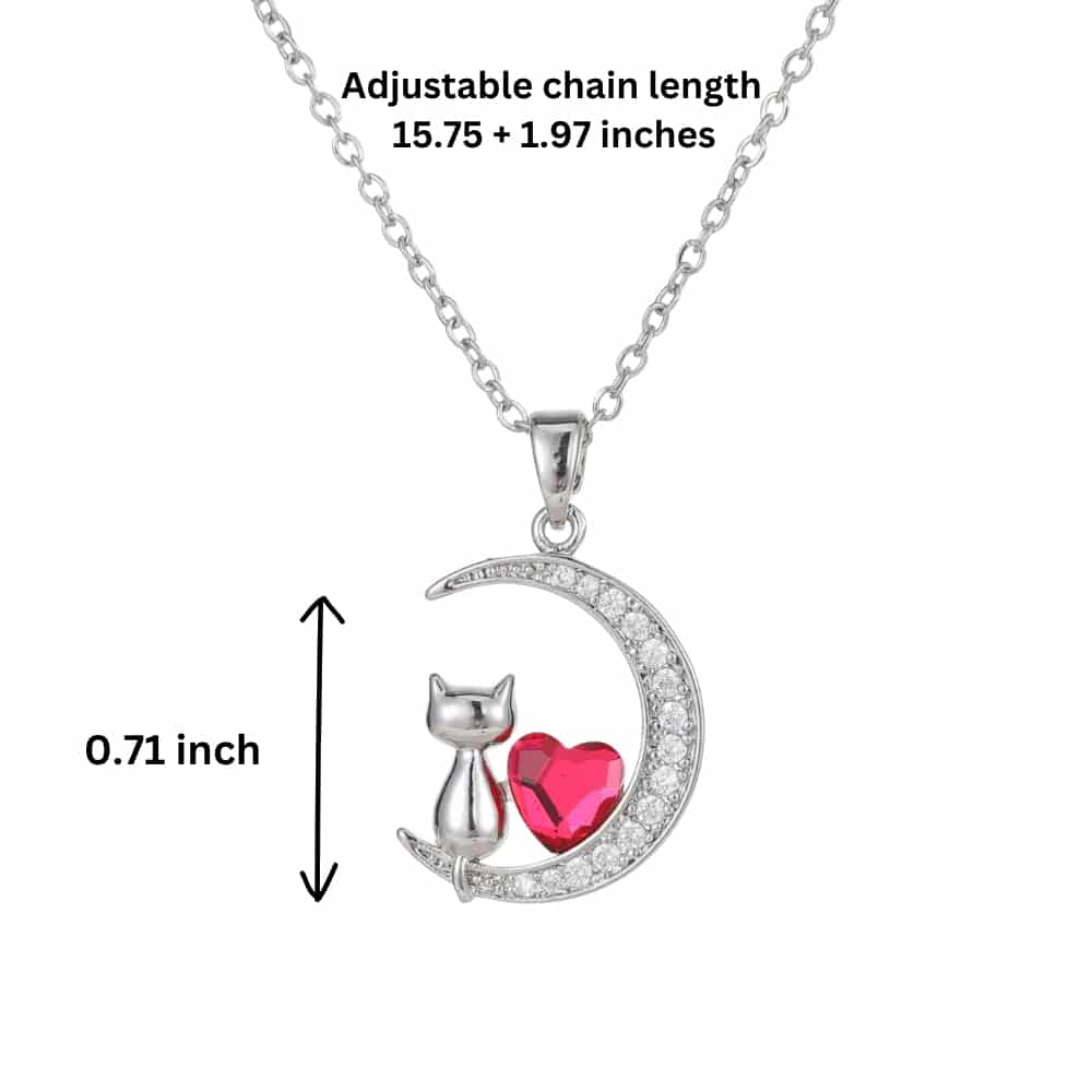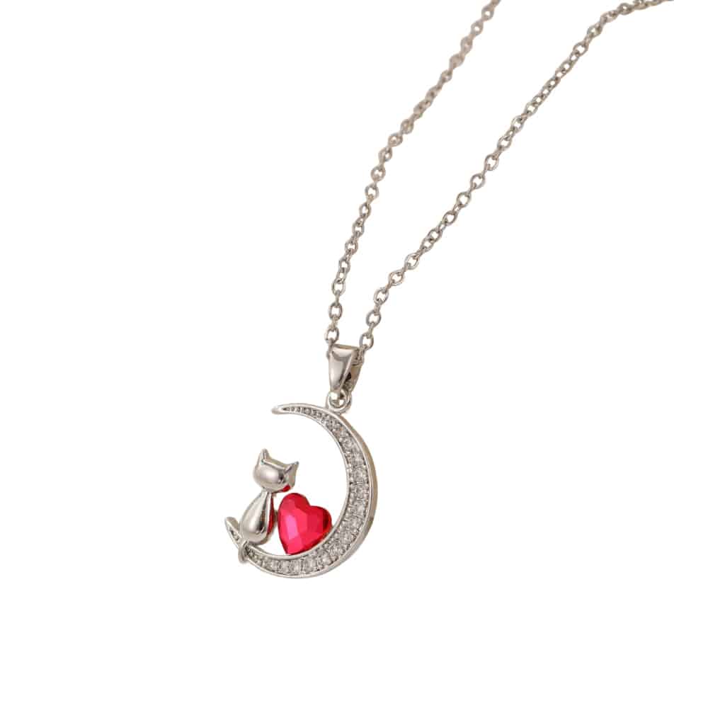 Celebrate the sweet bond between you and your feline friend with the Moonlit Love Cat Pendant Necklace. This charming design features a graceful cat resting beneath a sparkling crescent moon, paired with a vibrant heart accent that symbolizes love, companionship, and the special connection shared with cats. Elegant yet playful, it’s the perfect piece for cat lovers who want to carry a little reminder of that love wherever they go.