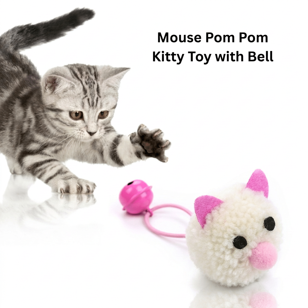 Treat your cat to playful fun with the White & Pink Pom-Pom Kitty Toy with Bell! This fluffy pom-pom toy features soft white plush with adorable pink ears and nose details, creating a cute little kitty your pet will love to chase. The attached bell adds a light jingling sound that sparks curiosity and encourages your cat’s natural hunting instincts.
