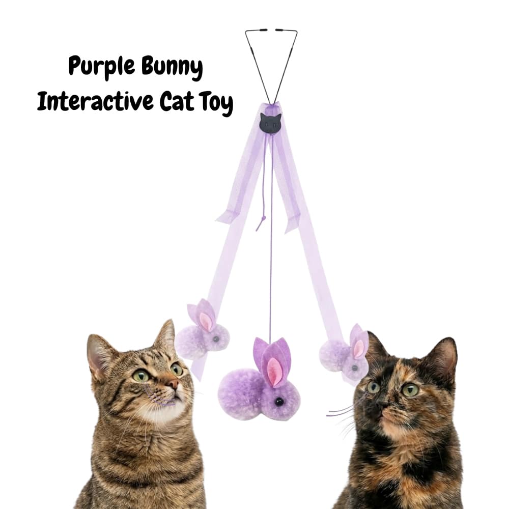 Purple Bunny Interactive Cat Toy with Adjustable Elastic Rope- Door/Window Hanging Rabbit Self Play