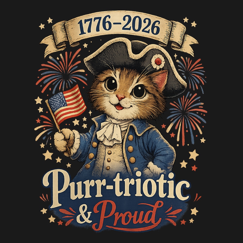 Purr-triotic & Proud Standard Tee Black - iHeartCats.com