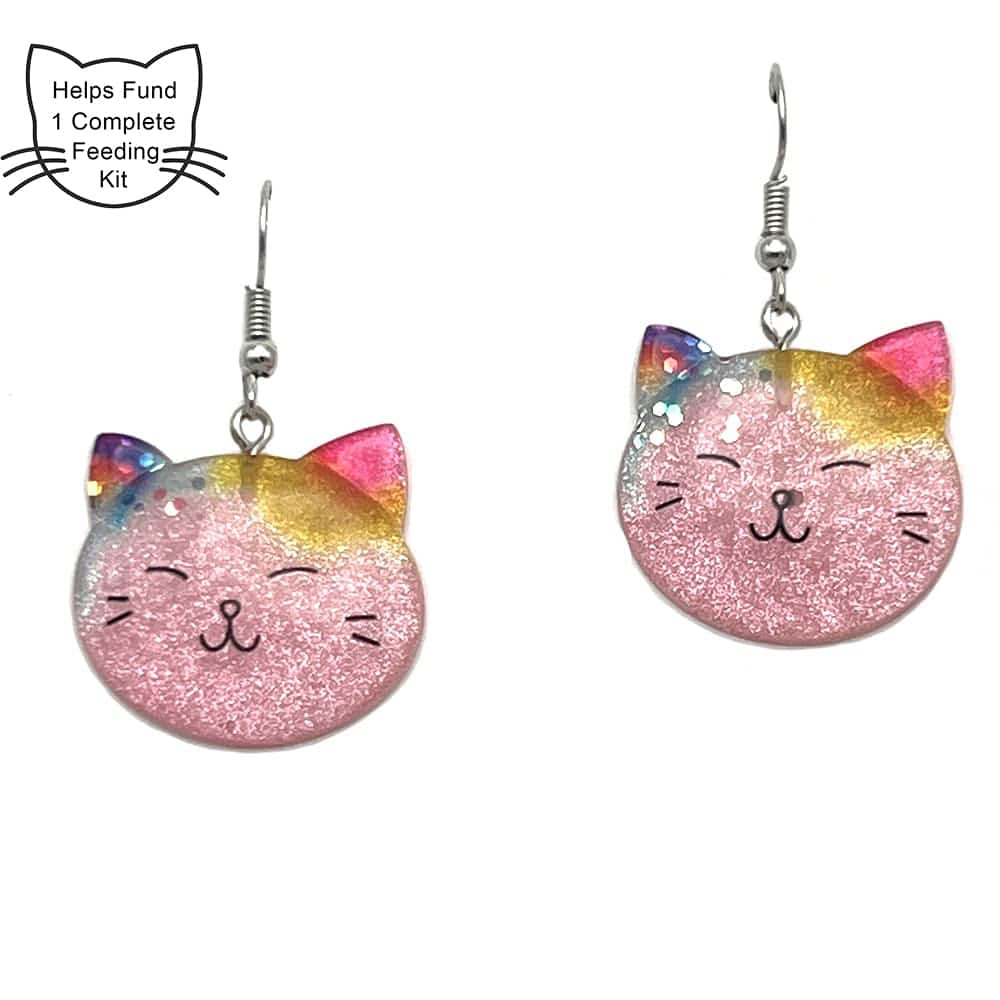 Purrect Start -Sweet Gorgeous Sparkle Kitty Dangle Earring- Saving The Tiniest Of Lives