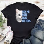 Purrfect Start – Ask Me How I Save Kittens Standard Tee Black – Helps Fund 1 Feeding Kit to Save Kittens’ Lives