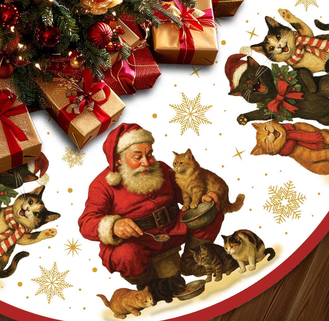 Whether you’re a dedicated cat lover or simply want a tree skirt that feels joyful, cozy, and timeless, the Santa & Cats Edition will be the perfect finishing touch to your Christmas celebrations.