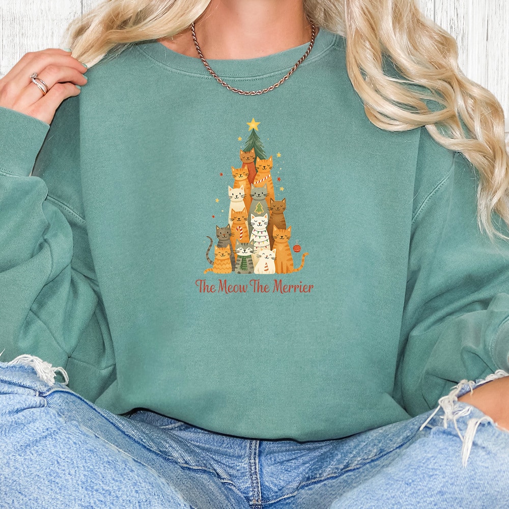 The Meow The Merrier Sweatshirt Heather Grey - iHeartCats.com