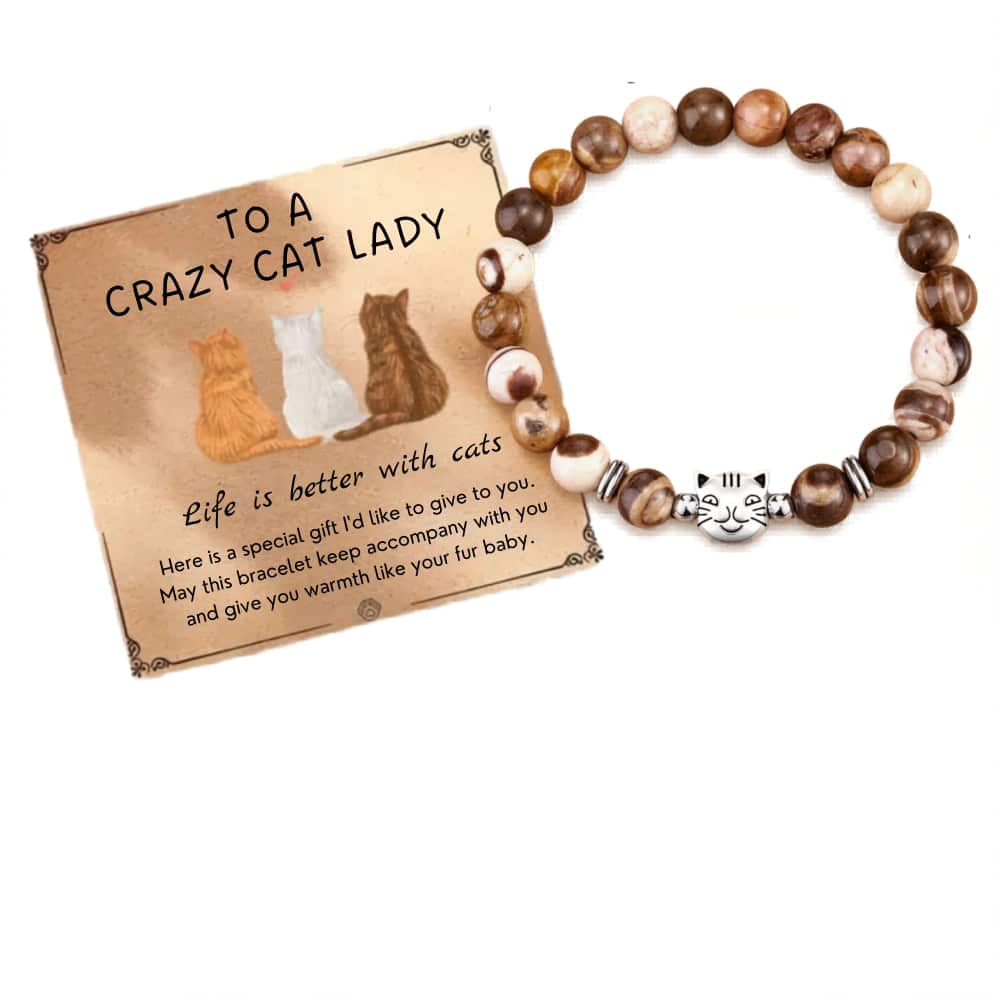 To That Special Crazy Cat Lady – Life Is Better with Cats Natural Stone Beaded Bracelet