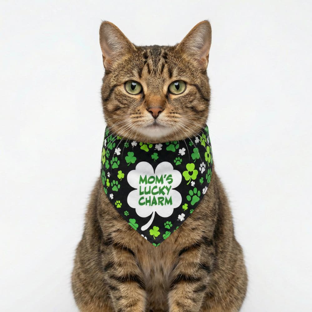 Show off your cat’s favorite role—being Mom’s Lucky Charm! 🍀 This adorable bandana features playful shamrocks and paw prints with a bold lucky message that celebrates the special bond between you and your four-legged best friend. Soft, stylish, and full of charm, it’s perfect for St. Patrick’s Day or any day your kitty brings a little extra luck and joy to your life. ✨