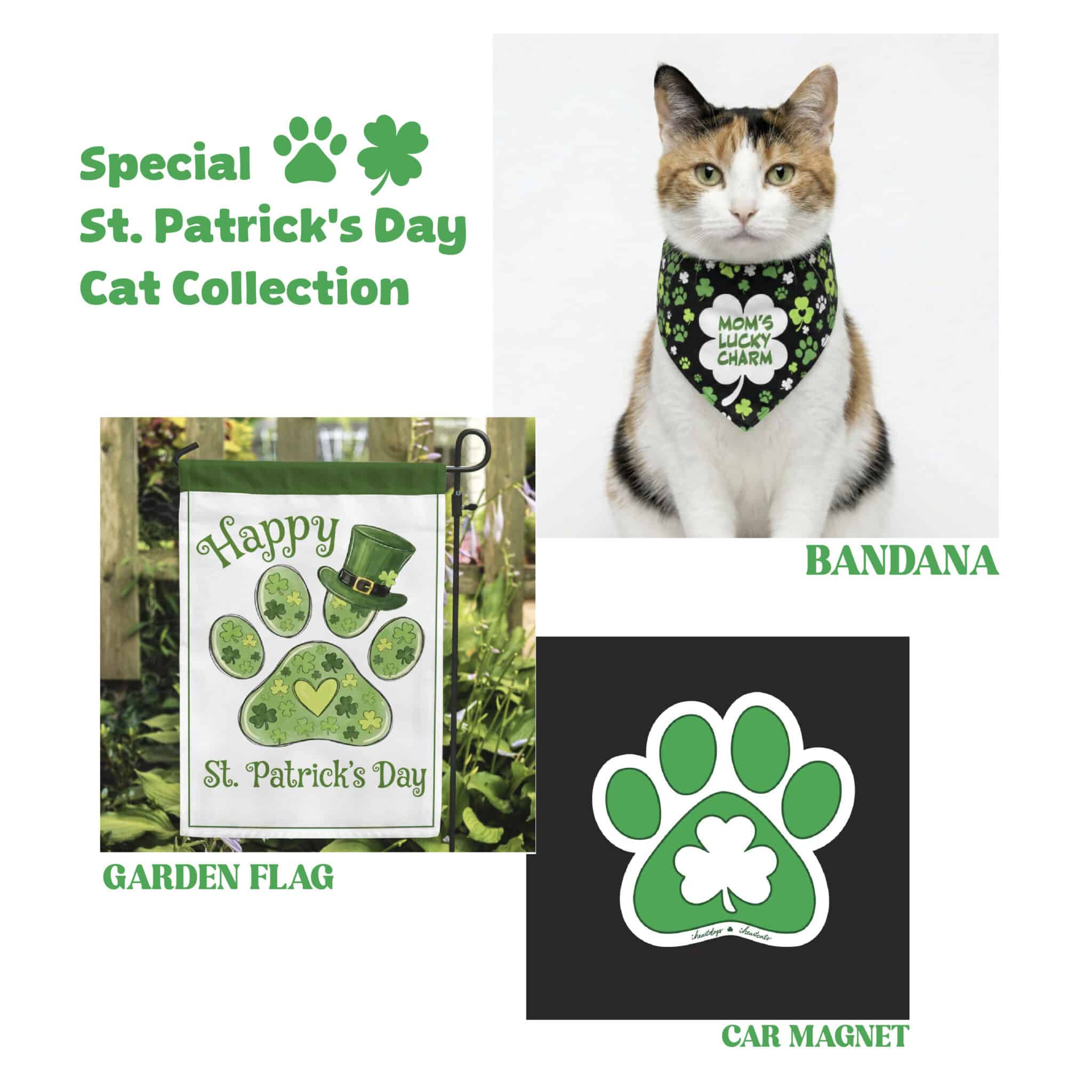 Mega Deal for VIP Members Only – Happy St. Patrick’s Day Garden Flag, Mom’s Lucky Charm Bandana & Lucky Cat Paw Magnet!