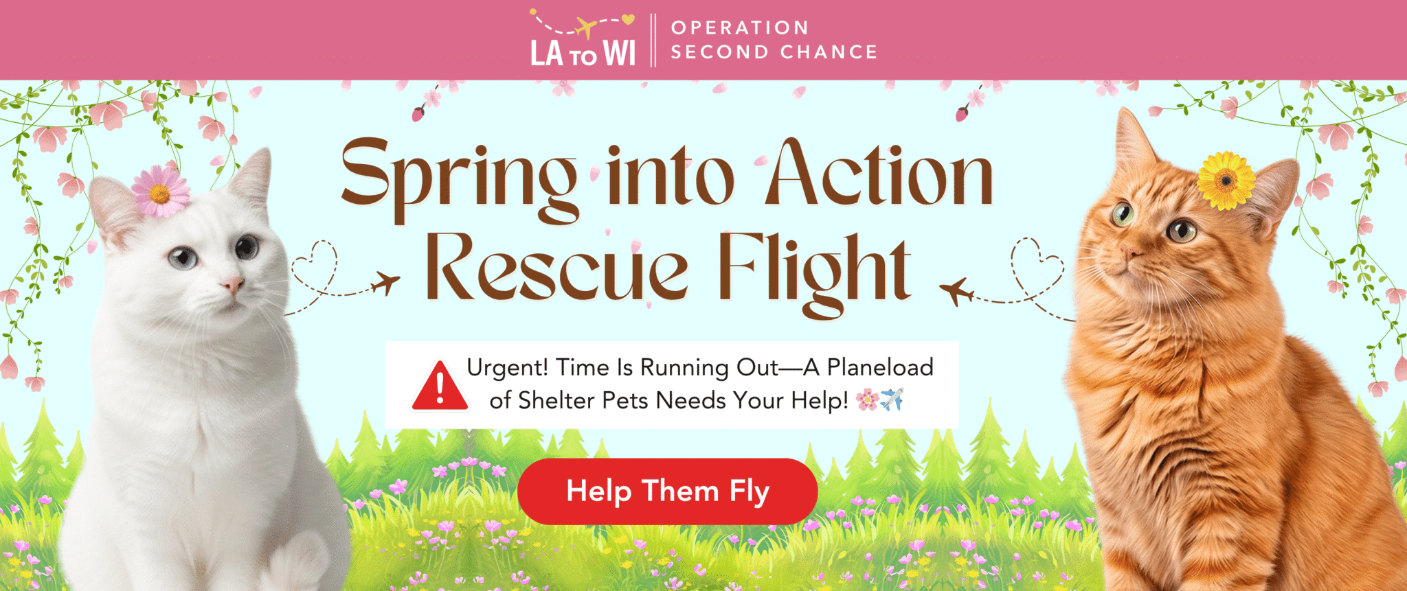 On April 11th, our Spring into Action Rescue Flight will take off—transporting at-risk dogs and cats from Louisiana to loving shelters in Wisconsin, where families are waiting.
