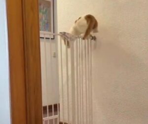 Instead of taking the easy route, it springs into action with impressive energy. Muscles tense, eyes focused, it launches itself upward. In a flash, it performs what can only be described as a parkour move. It pushes off the wall mid-air and clears the gate in one bold leap.