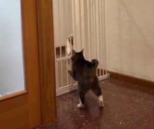 There is something almost emotional in that moment. A mix of determination, instinct, and maybe a little stubborn pride. This cat did not just want to get through. It wanted to conquer the challenge.
