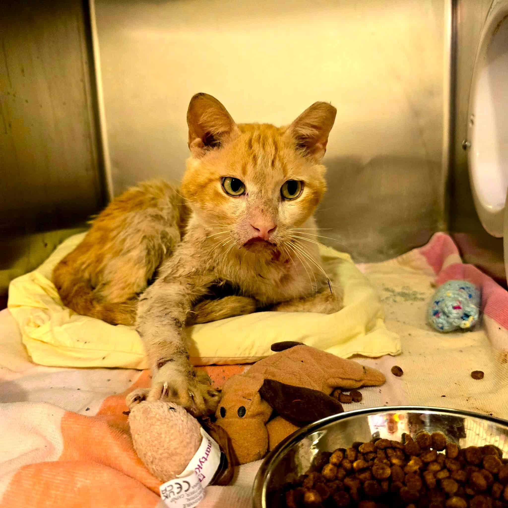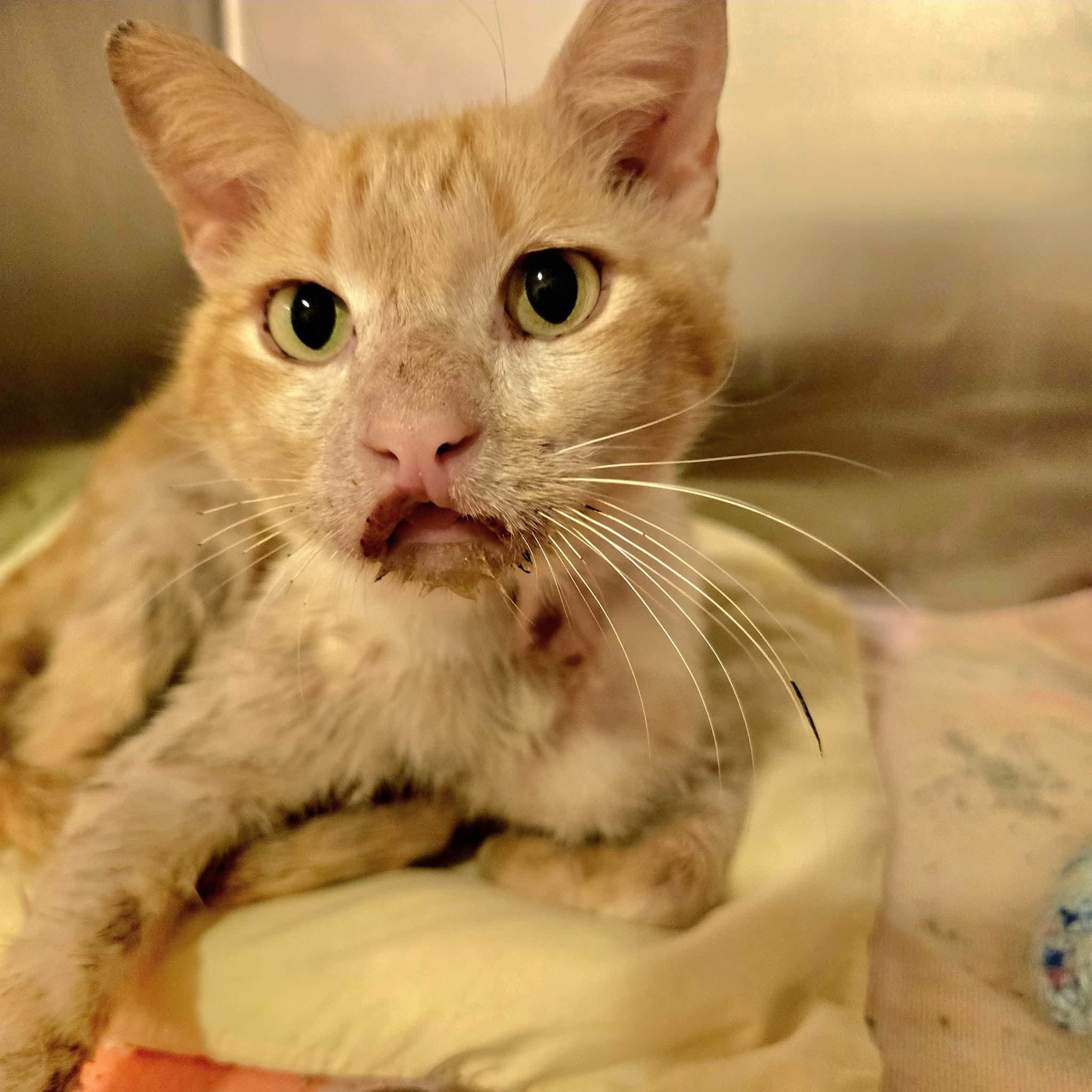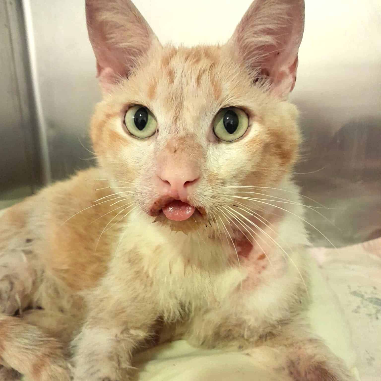 Sponge, a loving 3-year-old cat, was rescued from euthanasia with severe skin issues and painful dental disease. He needs urgent medical care to heal and live the life he deserves.