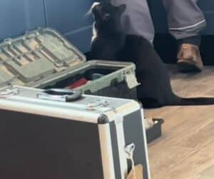 The handyman’s willingness to play along adds another layer of charm. Instead of brushing off the cat, he meets him at his level, turning a routine task into a memorable interaction.