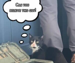 Instead of ignoring the cat, the handyman responds in the most unexpected way. He meows back.