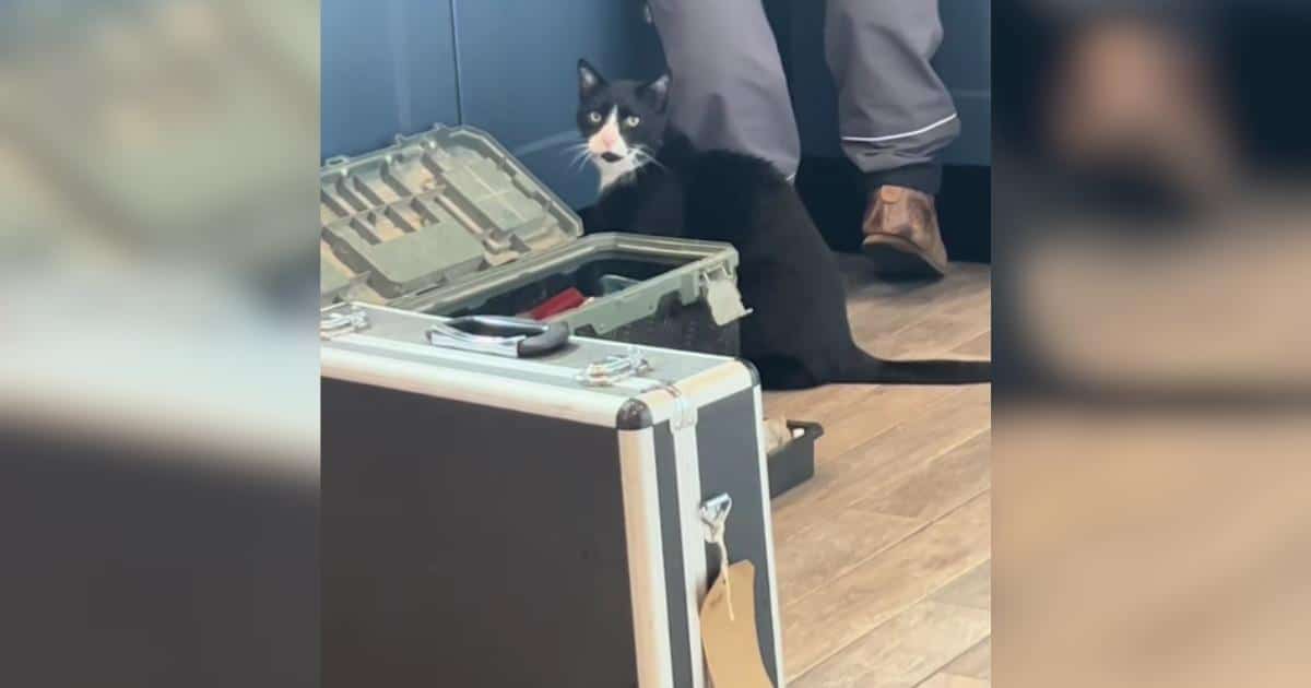 The handyman’s willingness to play along adds another layer of charm. Instead of brushing off the cat, he meets him at his level, turning a routine task into a memorable interaction.